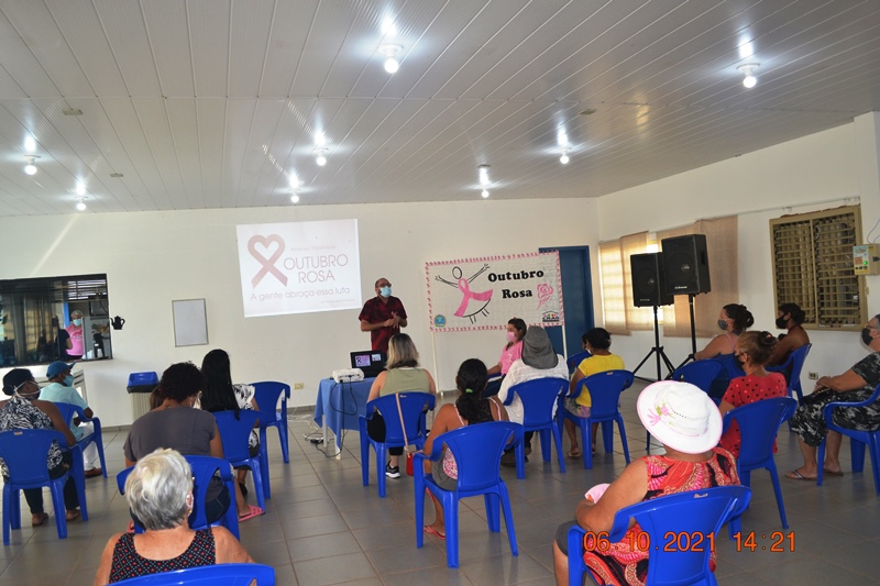 Em uma ação realizada pelo CRAS, para as mulheres que fazem parte do Projeto “Leite é vida,” em alusão ao “Outubro Rosa,” a Enfermeira Renata Mortari, a convite, fez uma palestra sobre a prevenção do câncer na mulher e esclareceu dúvidas em relação ao assunto. A Diretora da UBS Juliana Corrêa de Araújo, e a Secretária de Saúde Catiucia Aparecida da Silva, também contribuíram com a reunião.