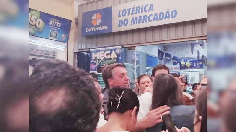 Bolsonaro chega de surpresa ao Mercadão de Campo Grande, come pastel com tubaína e faz jogo em Lotérica