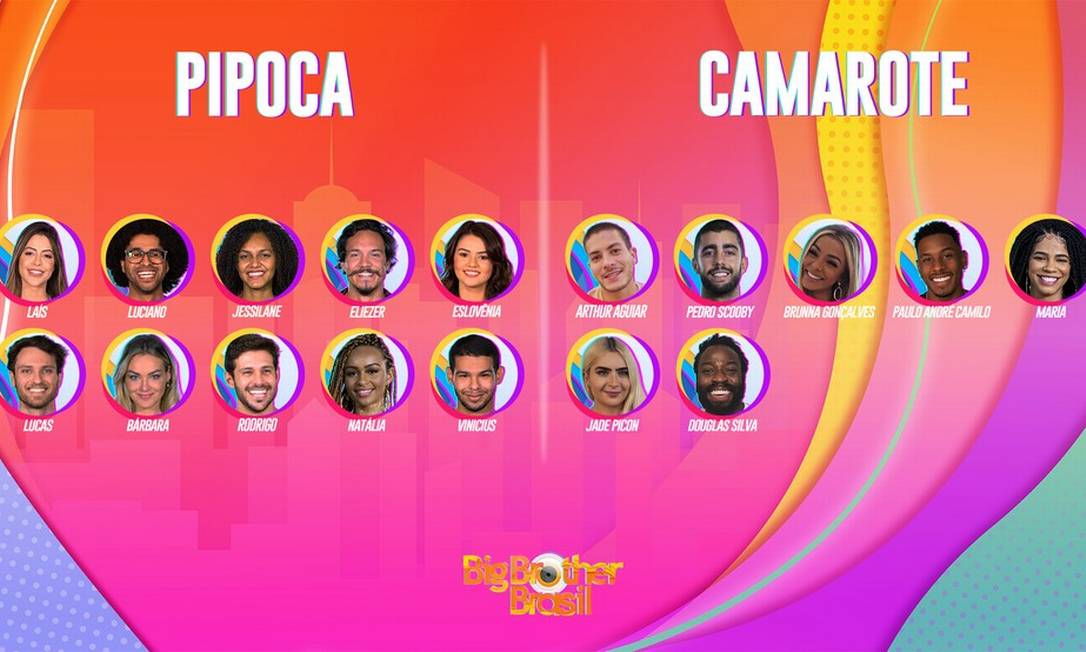LAÍS CALDAS – A primeira participante anunciada para o grupo Pipoca do BBB 22 é a médica Laís Caldas, de Crixás, Goiás. Pós graduada na área de dermatologia, diz que gosta de aparecer, de “chegar chegando” e atuou na linha de frente da Covid-19 durante a pandemia.LUCIANO ESTEVAN – Luciano tem 28 anos e gosta de ser notado! Apaixonado por ballet clássico, o ator também é dançarino e afirma ser bastante competitivo. Natural de Florianópolis, o brother trabalha em um canal infantil.JESSILANE – A sister de 23 anos também é goiana: moradora de Valparaíso de Goiás, a bióloga também dá aulas de biologia e começou a trabalhar aos 14 anos. Jessilane coleciona calcinhas e diz que não sabe guardar segredo!ELIEZER – Eliezer é designer e empresário, já foi atacado por um macaco na Tailândia e já ficou á deriva em um mar da Ásia: ele promete brilhar nas provas de resistência! O aventureiro de Volta Redonda, Rio de Janeiro, fez questão de declarar que está solteiro e que gosta de seduzir cozinhando sua especialidade: filé com gorgonzola. Ele diz que nunca usou um pente no cabelo e coleciona pulseiras.ESLOVÊNIA MARQUES – Ela já estudou física e hoje estuda marketing. Nasceu em João Pessoa, na Paraíba, mas mora em Caruaru, Pernambuco. Quando assunto é fofoca, Eslovênia se considera uma “boa comentarista”. Modelo, ela já foi Miss Pernambuco. Além de fazer parte do grupo Pipoca, ela também integra o grupo das solteiras.LUCAS – Formado em Engenharia de Produção, Lucas estuda Medicina e confessa ter sido um “patinho feio” na infância, mas, hoje, se considera o “Barão da piscadinha”. Capixaba de Vila Velha, ele é fã de esportes.BÁRBARA – De Novo Hamburgo, Rio Grande do Sul, Bárbara é modelo e profissional de Relações Públicas, e sonha com o BBB desde criança. Uma curiosidade da sister é que ela já fez um retiro em que ficou em silêncio por 21 dias.RODRIGO – Gerente comercial de São José dos Campos, São Paulo, Rodrigo come até 12 ovos por dia e não deixa de fazer “skincare” antes de dormir.NATÁLIA – Baladeira, Natália é modelo e designer de unhas. A sister é apaixonada por Michael Jackson, que a inspirou por causa do vitiligo – que os dois têm em comum e ela considera suas tatuagens.VINÍCIUS – Bacharel em Direito, Vinícius é influenciador de baixa renda, e já chegou a vender um botijão de gás para comprar um ingresso para ver um show da Anitta! Fã de Kpop, mora em Crato, no Ceará.ARTHUR AGUIAR – O ator é o primeiro integrante a ser anunciado no grupo Camarote. O artista atuou em três edições de “Malhação”, sendo protagonista em “Malhação: Sonhos”, com o personagem Duca. É casado com Mayra Cardi desde 2017, tem uma filha de três anos chamada Sophia e foi vice-campeão da Dança dos Famosos em 2015.PEDRO SCOOBY – Ex de Luana Piovani e Anitta, Pedro Scooby é surfista, tem 33 anos e três filhos, cujos nomes – Dom, Ben e Liz – estão tatuados no peito. Atualmente, é casado com a modelo e atriz Cintia Dicker. Nascido e criado em Curicica, Zona Oeste do Rio de Janeiro, mora hoje em Portugal.BRUNNA GONÇALVES – Cheia de gingado, a bailarina Brunna Gonçalves ficou conhecida quando começou a trabalhar com Ludmilla. Tempos depois, as duas se apaixonaram. Segundo Brunna, a esposa foi a primeira mulher que beijou e que até conhecer Lud só ficava com homens.PAULO ANDRÉ CAMILO – Atleta olímpico, Paulo André é vaidoso, gosta de ser o diferente e diz que é competitivo, porque nasceu pra vencer. P.A., como gosta de ser chamado, tem oito medalhas de ouro no atletismo. Nascido em Santo André, em São Paulo, vive atualmente em Vila Velha, no Espírito Santo. O jovem de apenas 23 anos conta que tem personalidade forte, mas é um pouco tímido.MARIA – Atriz e cantora, Maria é mais uma do time das solteiras e não foge de uma briga! Ela diz que tem bons argumentos, mas também é debochada. Maria é nome artístico de Vitória Nascimento Câmara, mora sozinha com os cachorros Drake e Pitty, é fã de Alcione e Péricles e estuda teatro desde os três anos de idade. Recentemente, ela viveu a personagem Verena na novela “Amor de Mãe”.JADE PICON – Empresária e influenciadora digital, Jade Picon não gosta de deixar nada mal resolvido. Ela diz que é muito sincera e gosta de jogar. Um dos nomes mais esperados pela internet era o da irmã do ator Leo Picon, depois da dica de Boninho sobre um participante que tem mania de “dar descarga com o pé”.DOUGLAS SILVA – Douglas Silva, de 33 anos, ganhou fama internacional ainda em sua adolescência ao interpretar Dadinho no filme “Cidade de Deus”, que foi indicado ao Oscar em 2004. Ele também se destacou como o primeiro ator brasileiro nomeado ao Emmy Internacional por seu papel como Acerola na série “Cidade dos Homens”. Inclusive, na premiação, ele aproveitou que a apresentadora americana Oprah estava sentada numa mesa perto dele e tirou uma foto com ela.