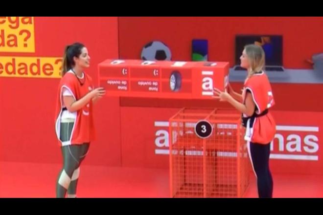 Só os participantes do grupo Pipoca participaram da dinâmica. Laís e Bárbara venceram depois que Lucas e Luciano deixaram cair um dos cubos.