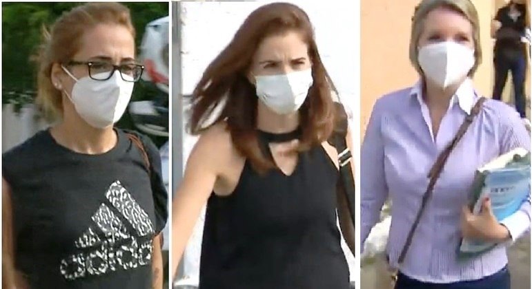 Anna Jatobá, Suzane Richthofen e Elize Matsunaga na saída da prisão – Reprodução/Record TV