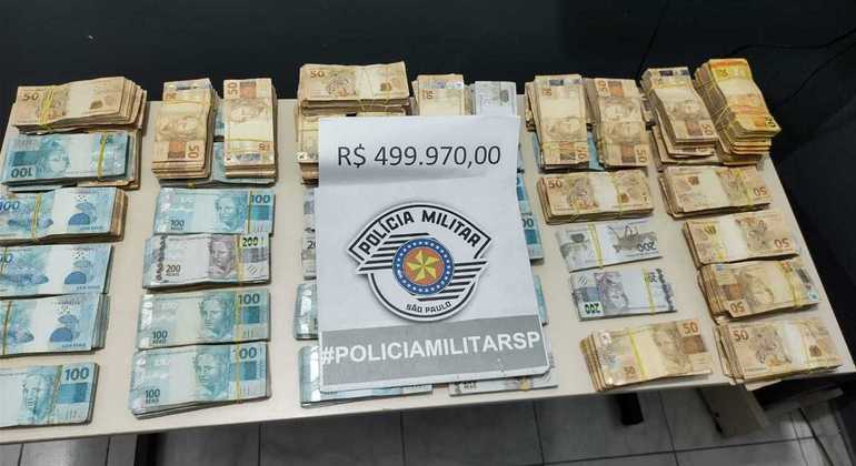A PM decidiu, então, levá-los à delegacia. Três policiais militares passaram uma hora e meia contando as cédulas. O valor totalizou R$ 499.970. Até o momento, a procedência do dinheiro não foi confirmada. Segundo a polícia, as notas são, principalmente, de R$ 50, R$ 100 e R$ 200.