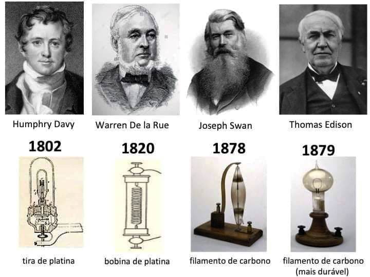 Finalmente, em 1879, Thomas Edison (e que portanto não foi o inventor!) conseguiu desenvolver uma lâmpada com filamento de alta durabilidade e que foi comercializada.