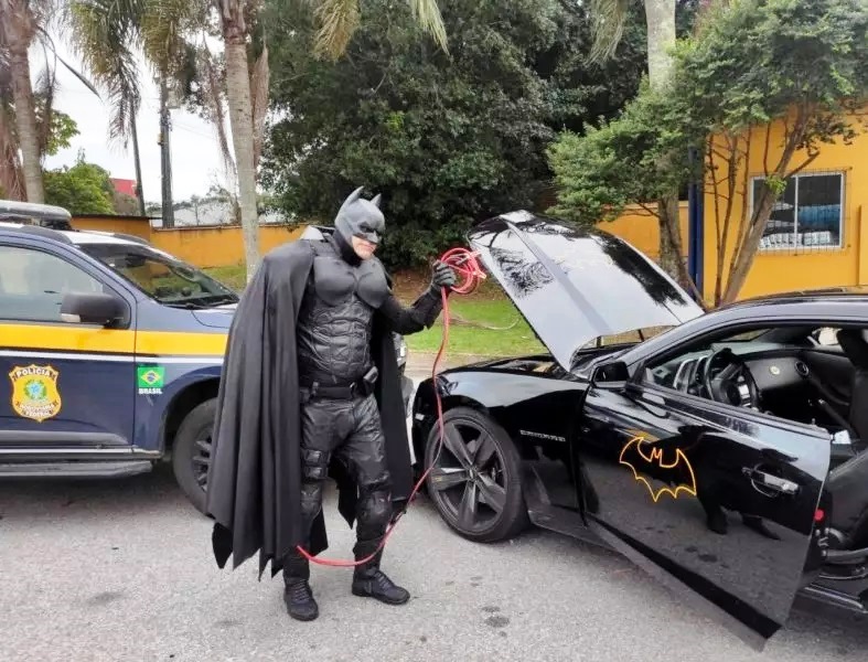 Conforme a PRF de Santa Catarina, o “Batman” em questão é o aposentado Renato Bilbao, que realiza trabalho voluntário em creches, orfanatos e hospitais da Grande Florianópolis. Ele estava fantasiado e com seu Camaro Batmóvel porque seguia a um destes trabalhos.