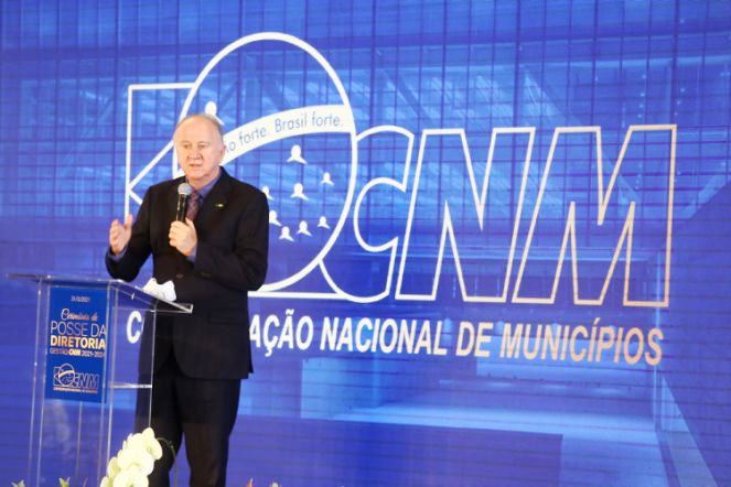 Fonte: Conjuntura On-Line/De Brasília – Foto: Paulo Ziulkoski durante discurso de posse (Foto: Agência CNM)