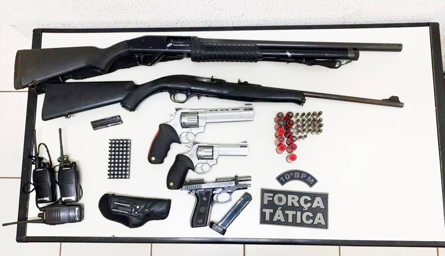 Segundo a polícia, ao todo, foram apreendidos armas de fogo – duas espingardas calibre 12, outra 22, dois revólveres e uma pistola 380 -, três rádios amadores, munições e 15 porções de cocaína.