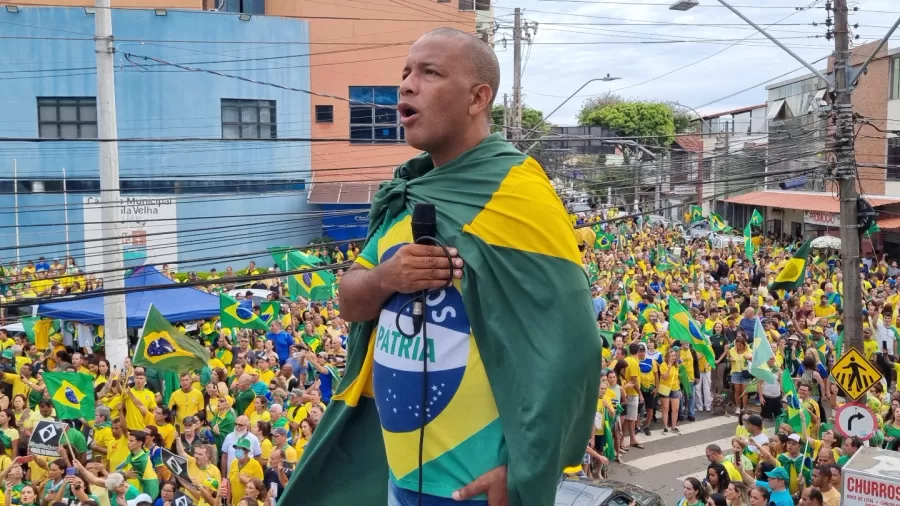 Fonte: UOL – Por Camila Turtelli e Thaís Augusto – Foto: Pastor Fabiano Oliveira, alvo do STF, durante ato bolsonarista em Vila Velha (ES)
