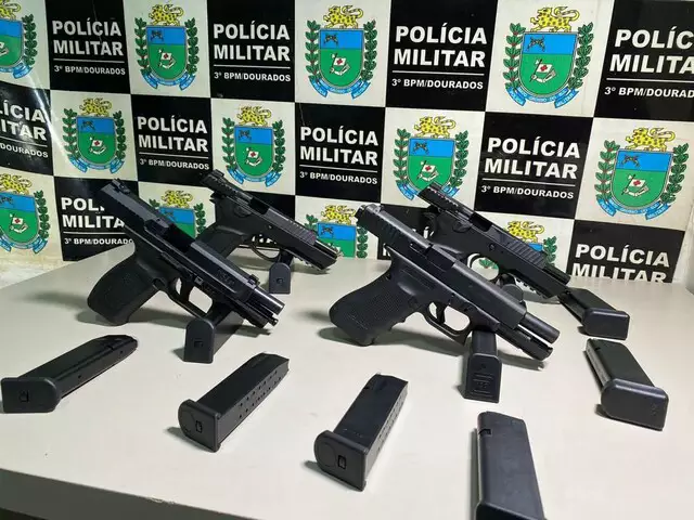 Fonte: campograndenews – Por Helio de Freitas, de Dourados – Foto: As quatro pistolas e os 10 carregadores apreendidos com cariocas (Foto: Adilson Domingos)