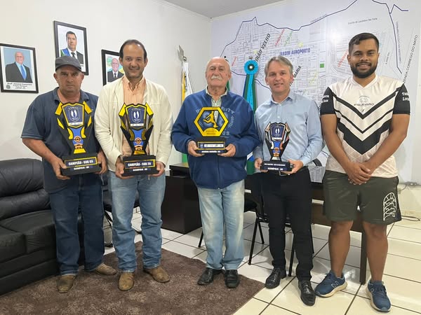 Nesta manhã (08/07), o Prefeito Juvenal Consolaro e o Vice-Prefeito Jorge Mortari receberam no gabinete o Secretário Municipal de Educação Pascoal Amorim, acompanhado do educador físico Lucas Ian e o assessor esportivo Nilton Magioti que vieram mostrar ao executivo os troféus que os atletas de Figueirão ganharam nos jogos da Liga Azul que aconteceu no final de semana em Alcinópolis.
