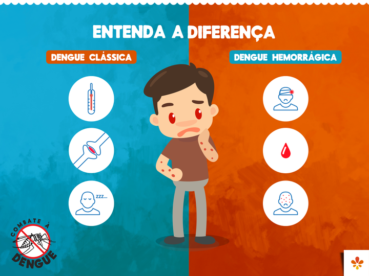 A doença é dividida em dois grupos: a dengue clássica e a hemorrágica, quando a infecção começa a destruir plaquetas responsáveis pela coagulação, e o paciente passa a ter sangramentos na gengiva ou nas fezes.